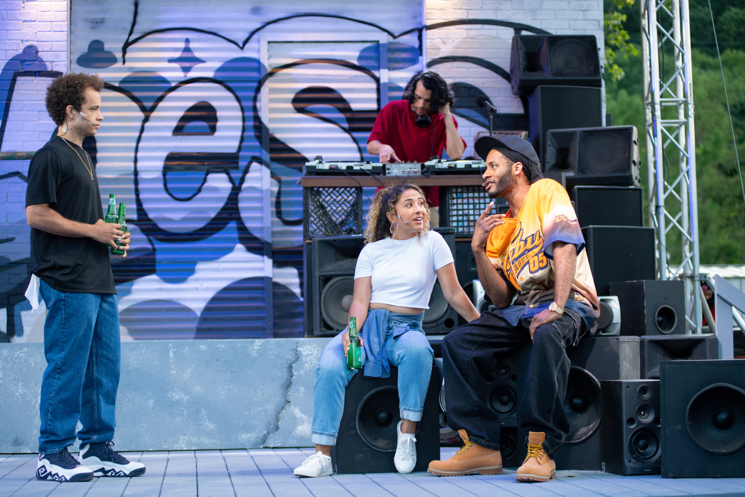 Nicholas Caycedo (an Ithaca College alum) and Kiziana Jean-Louis fill out the story playing a raft of DJs, rappers, managers and street folk (Caycedo has a particularly amusing riff as the conspiracy theorizing Camo Man, while Jean-Louis nails an in-charge manager/agent.) Each also get a swing at a main character.